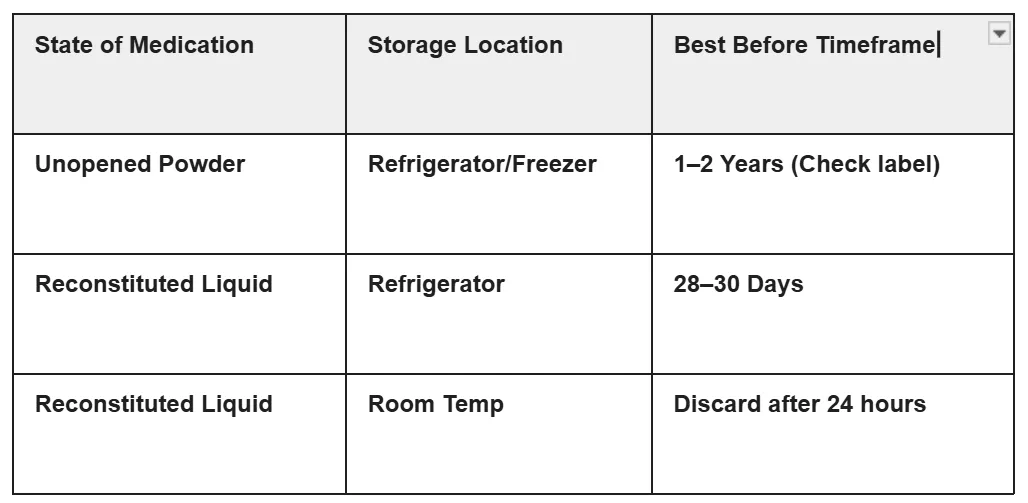 * Unopened/Reconstituted: It should ideally stay in the refrigerator