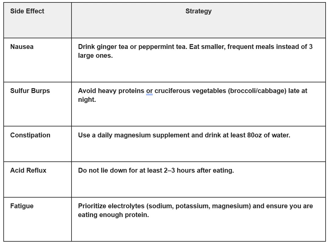 • Stay Hydrated: Drink plenty of water (at least 2-3 liters a day) to support your metabolism and reduce side effects.