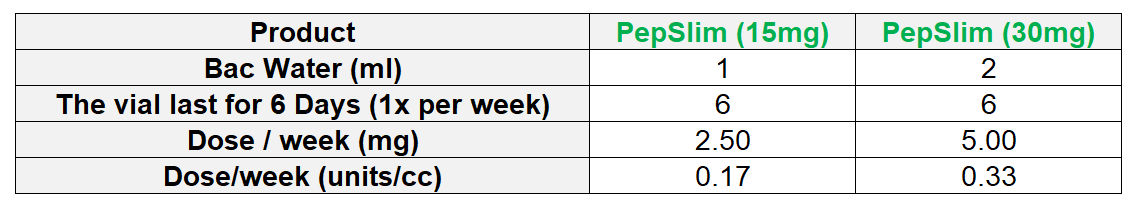 PepSlim is administered on a gradual titration schedule. This slow increase is designed to help your body adjust to the medication and minimize gastrointestinal side effects. See our Recommended Weekly Dosing Schedule below: